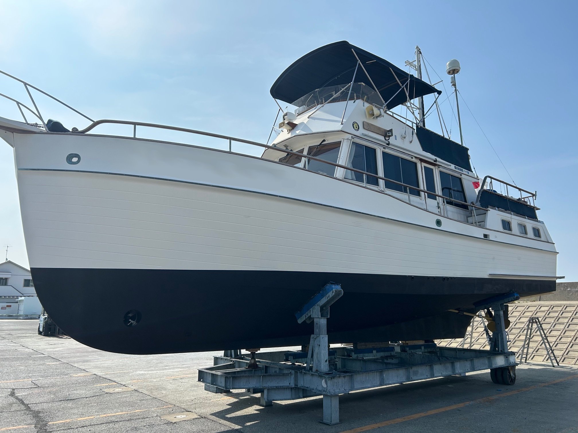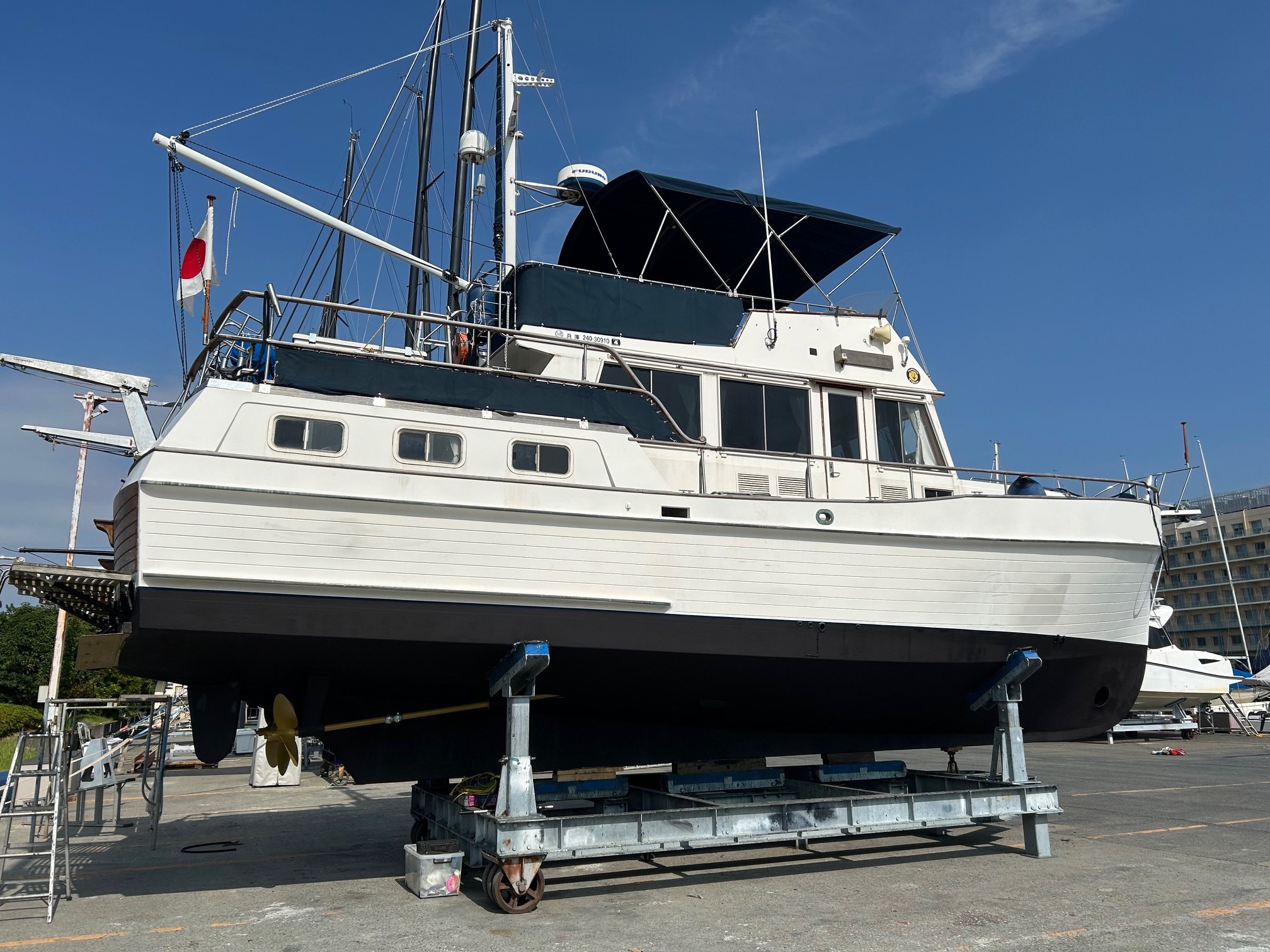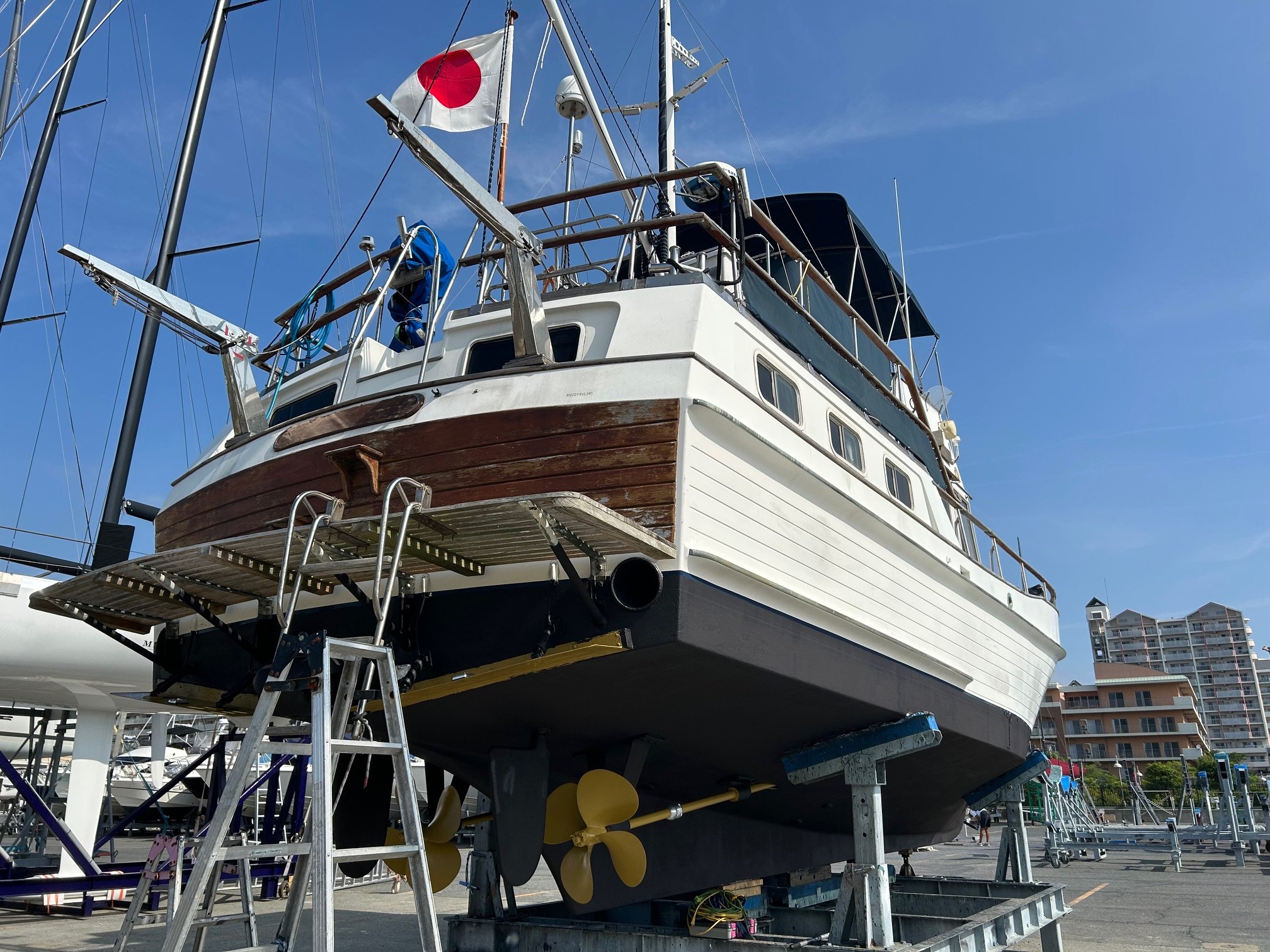 2025年6月 上下架 船底:エンジン装備 ハル:デッキ塗  装 チークサンディング
