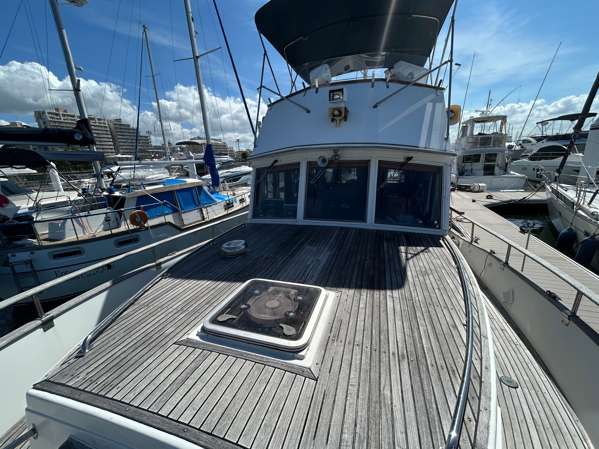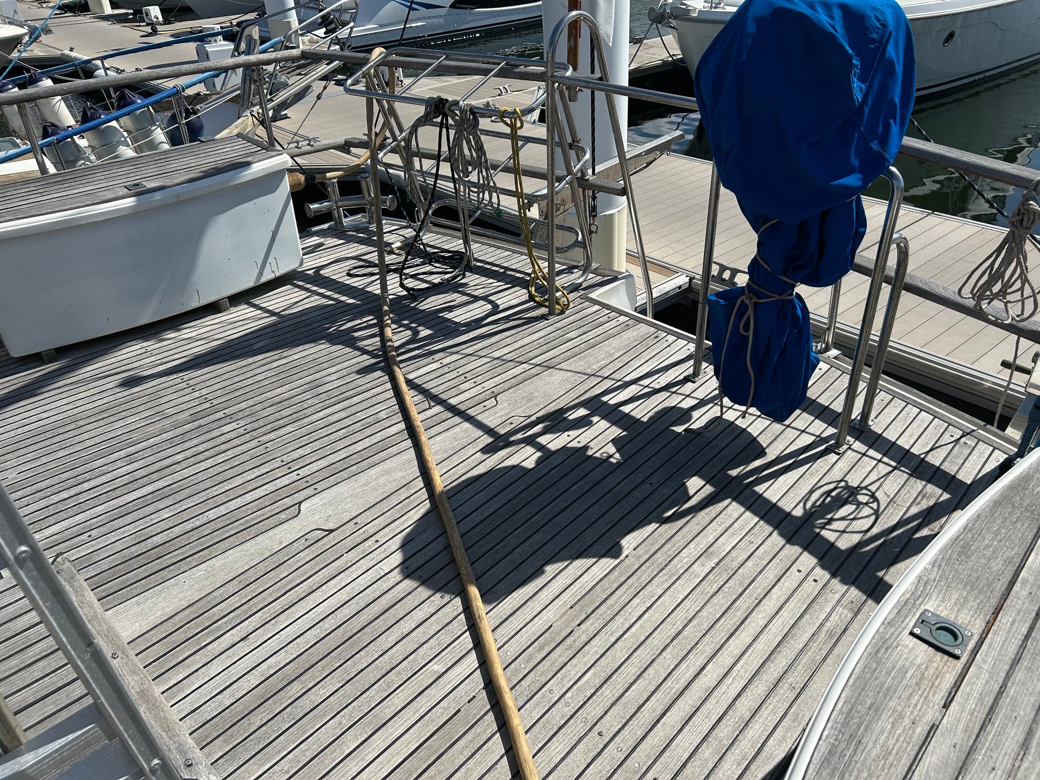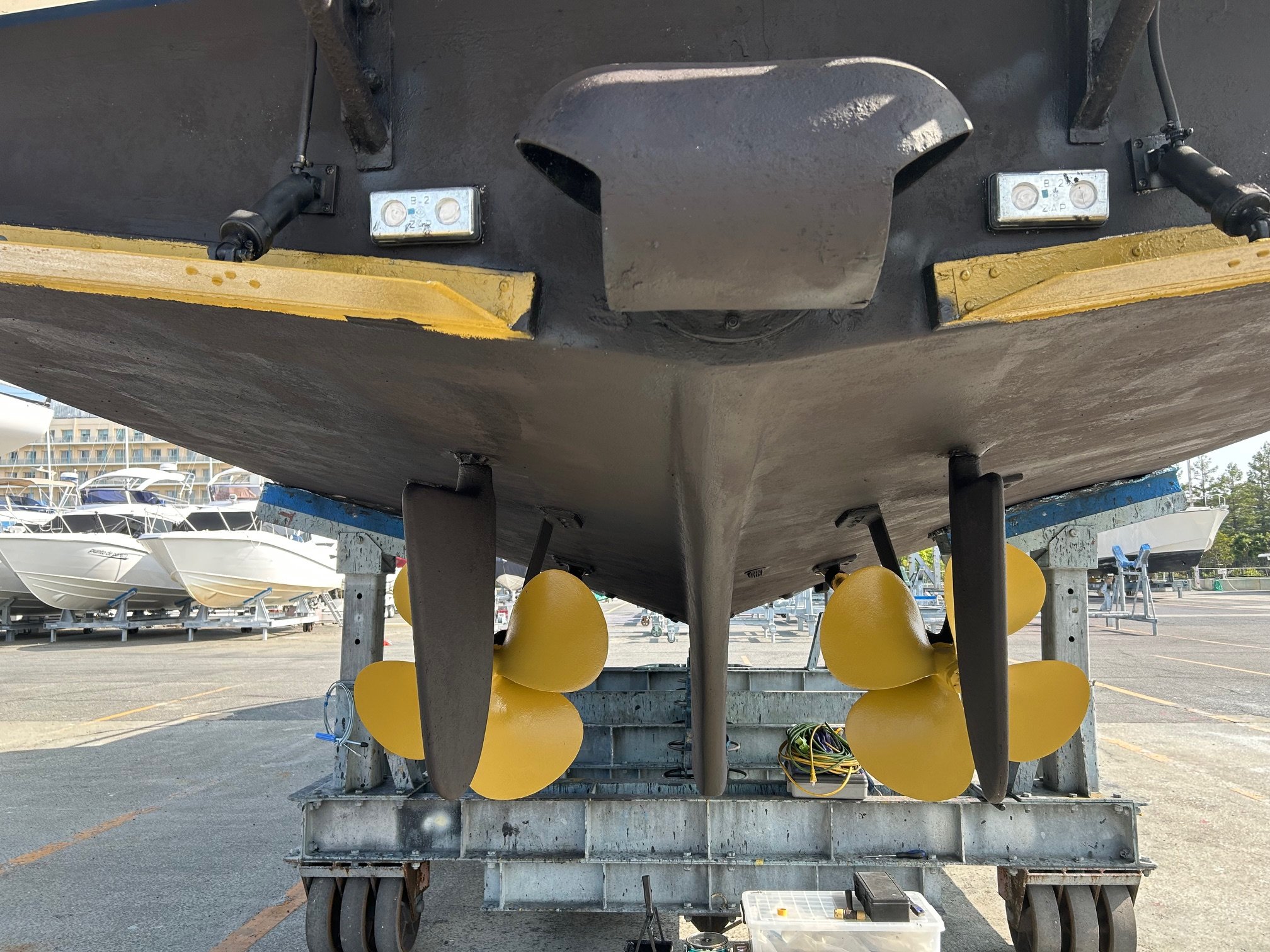 2025年6月 上下架 船底:エンジン装備 ハル:デッキ塗  装 チークサンディング